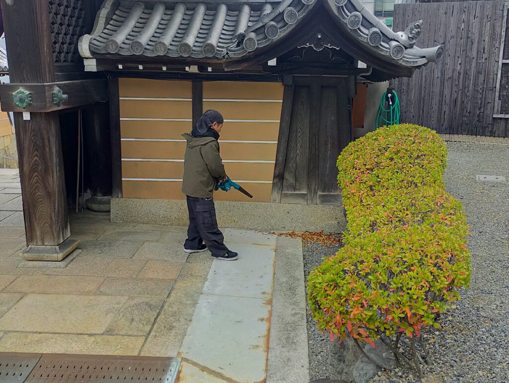 境内地も最後の掃除をして、参拝者の皆様が新年を気持ちよく迎えられるように準備しています。